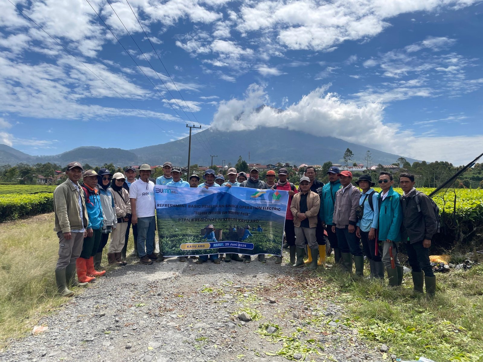 Blur.co.id, Jambi — Untuk meningkatkan kompetensi dan efisiensi kerja di lapangan, PT Perkebunan Nusantara IV (PTPN IV) Regional 4 melatih para pemetik Teh di Kebun Kayo Aro kabupaten Kerinci Jambi dan Kebun Danau Kembar kabupaten Solok Selatan, Sumbar. Pelatihan bertajuk Refreshment Basic Pemetikan Single Operation Electric diikuti mandor dan pemetik Teh yang merupakan garda terdepan dalam proses produksi Teh unggulan.