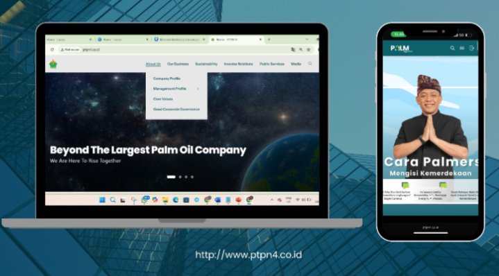 Pembaruan website perusahaan yang tetap beralamatdi www.ptpn4.co.id menampilkan wajah baru dengandesain lebih modern, sekaligus menyajikan informasiyang lebih komprehensif terkait korporasi. “Standarketerbukaan informasi publik dan investor relations menjadi acuan. Kami ingin perusahaan dapatmenyajikan akses informasi yang transparan, mudah, dan berkelanjutan,” jelasnya.