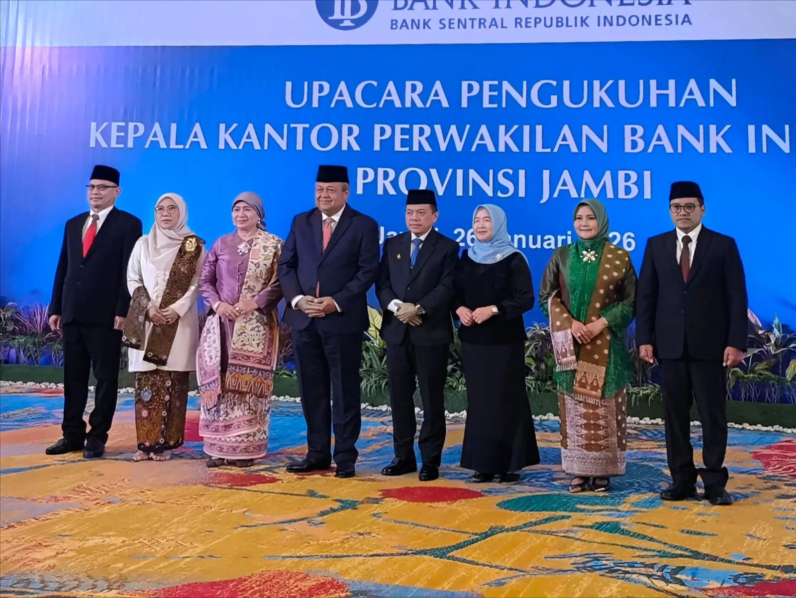 Jambi – Gubernur Bank Indonesia (BI), Perry Warjiyo secara resmi mengukuhkan Tedy Arif Budiman sebagai Kepala Kantor Perwakilan Bank Indonesia Provinsi Jambi. Prosesi pengukuhan berlangsung khidmat di Swiss-Belhotel Jambi, Senin, 26 Januari 2026, dan disaksikan langsung oleh Gubernur Jambi Al Haris.