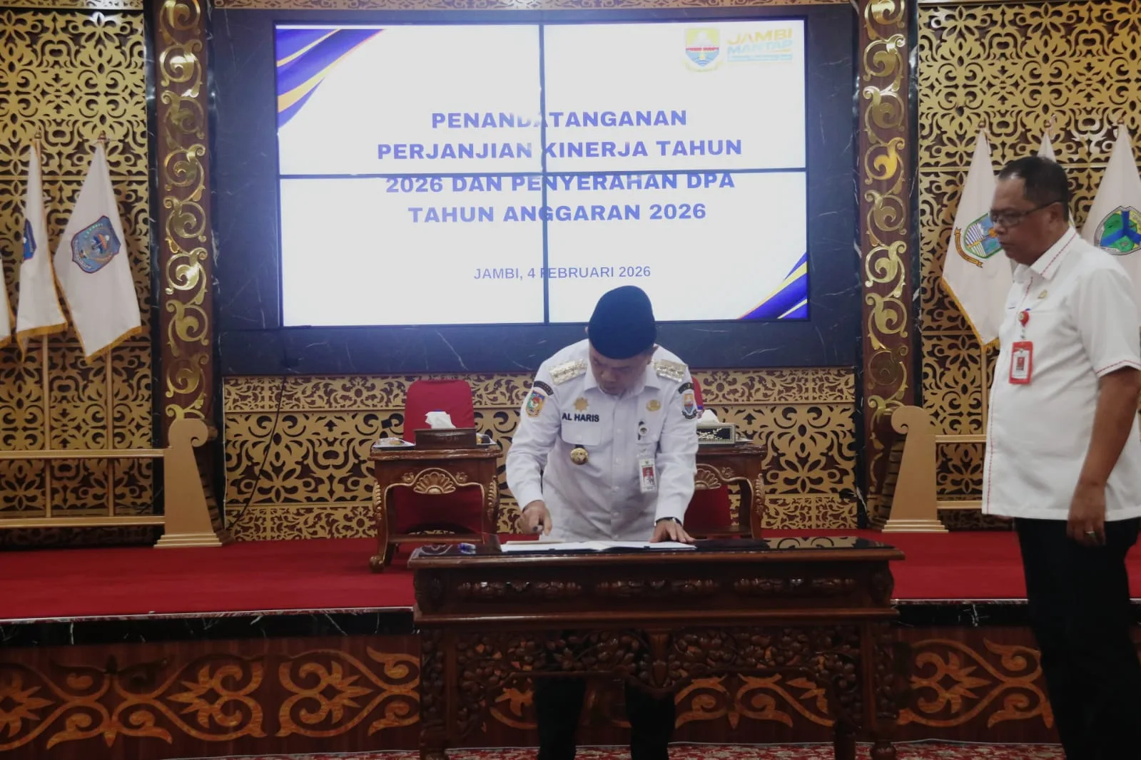 Penegasan tersebut disampaikan saat Penandatanganan Perjanjian Kinerja Tahun 2026 yang dirangkaikan dengan Penyerahan Dokumen Pelaksanaan Anggaran (DPA) Tahun Anggaran 2026 yang bertempat di Ruang Pola Kantor Gubernur Jambi pada Senin, 4 Februari 2026.